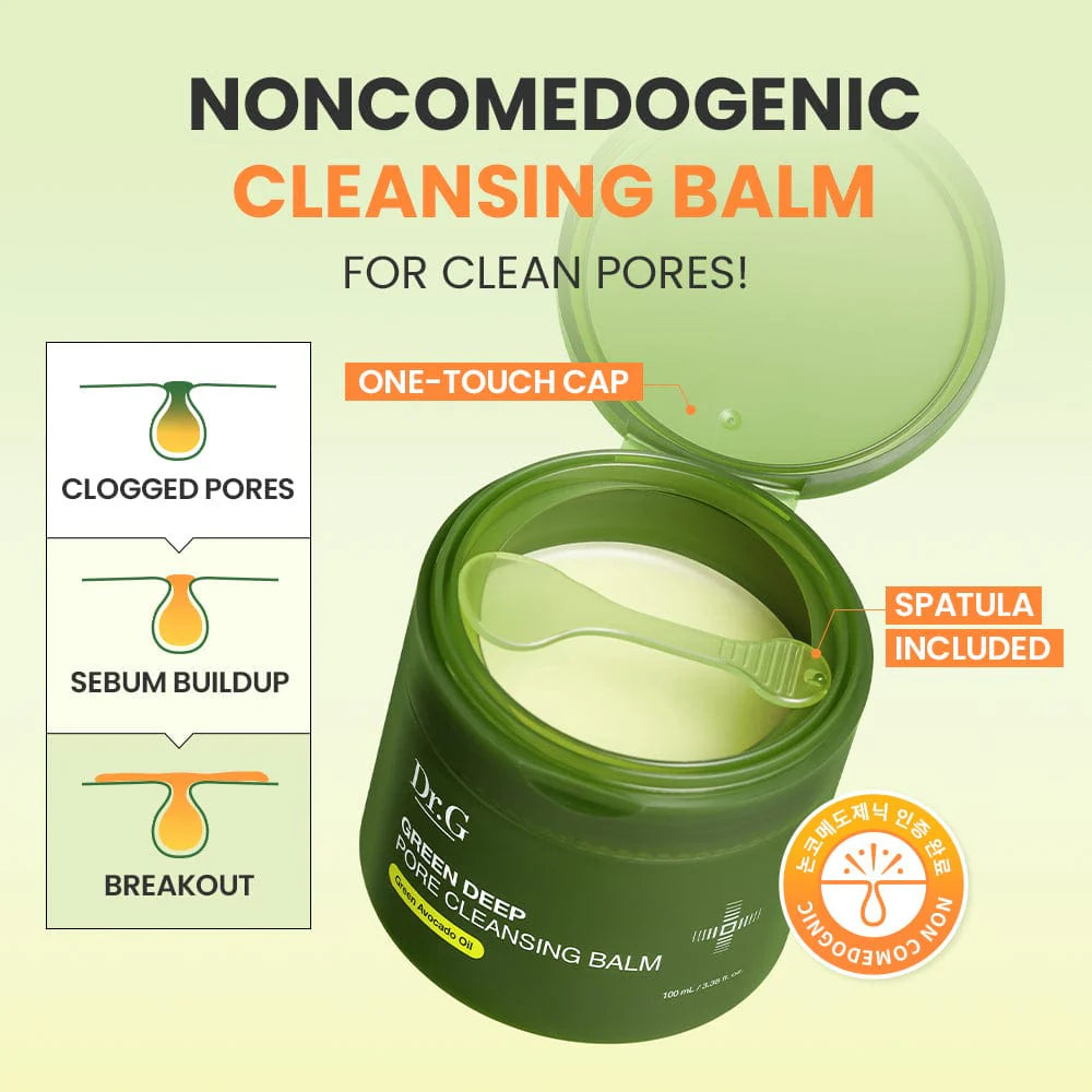 Dr.G Green Deep Pore Cleansing Balm is a gentle yet powerful balm cleanser with a soft, sherbet-like texture that melts into a silky oil as soon as it touches the skin. It dissolves makeup, sunscreen, and excess oil instantly while caring for clogged pores with the help of nourishing Green Avocado Oil. The balm spreads smoothly, breaks down impurities without irritation, and rinses off cleanly to leave the skin soft, hydrated, and refreshed.
