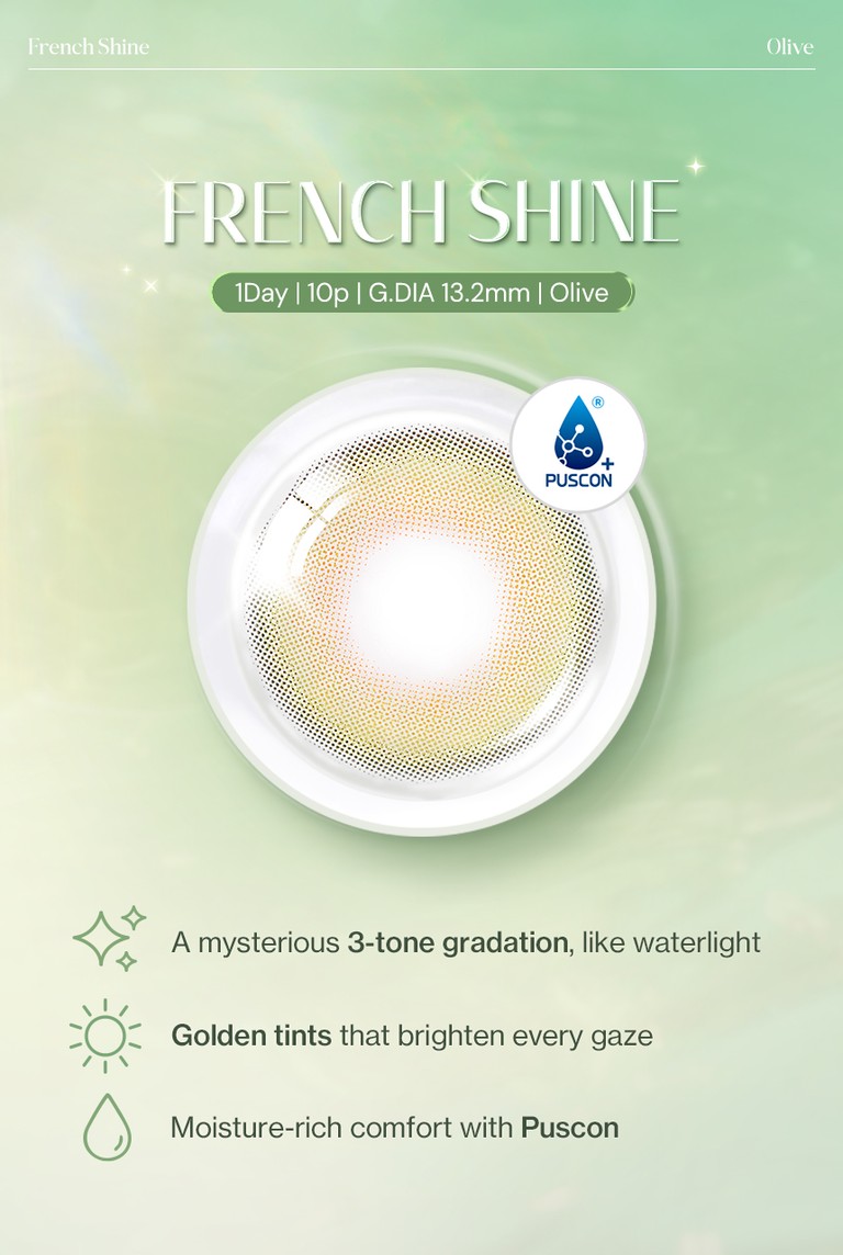 OLENS French Shine Olive Daily 10 pcs (Prescription 0.00~-8.00, 10 lenses)